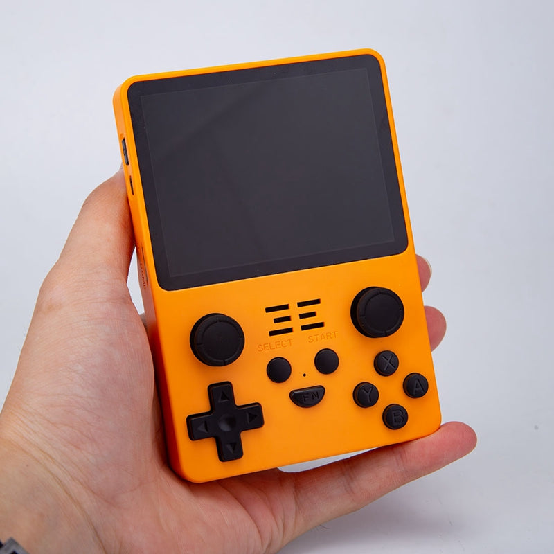 4.The game console boasts an open source ArkOS system with dual slots and 3500mah high voltage polymer lithium battery.