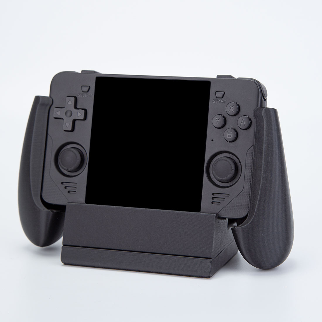 1. Only fit the Powkiddy RGB30 handheld game console, with precisely positioned, suitably sized, and magnetic charging features. Connected to the power supply can be recharged, and also supports to use of the handle.