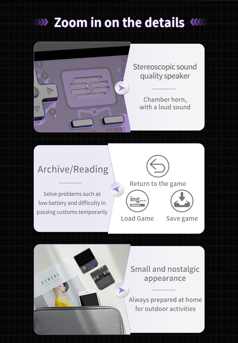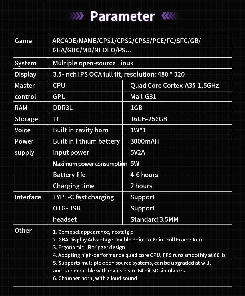 Games:Compatible with MAME/N64/PS/CP3/NEOGEO/GBA/NES/SFC/MD/NDS and other simulators