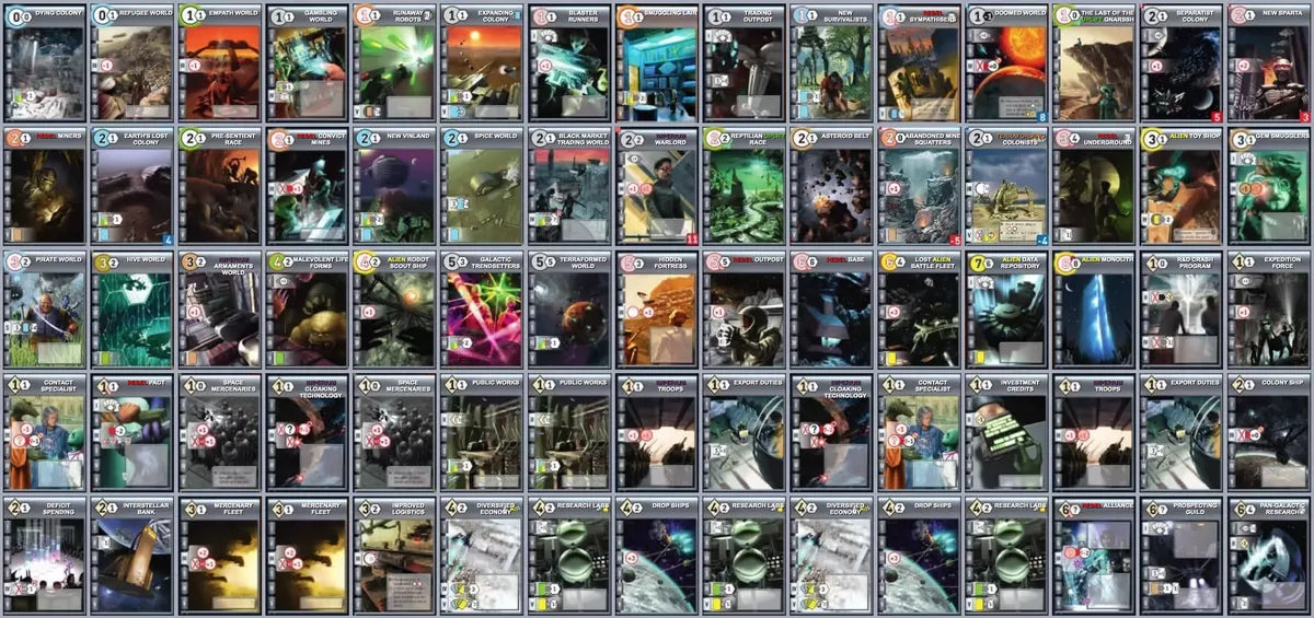 The second edition of the game is improved for CVD (color blindness) and includes 5 revised cards from the original version and 6 New Worlds promo homeworlds. The promo homeworlds and first edition compatible Revised Cards are both available for purchase through the BGG store.