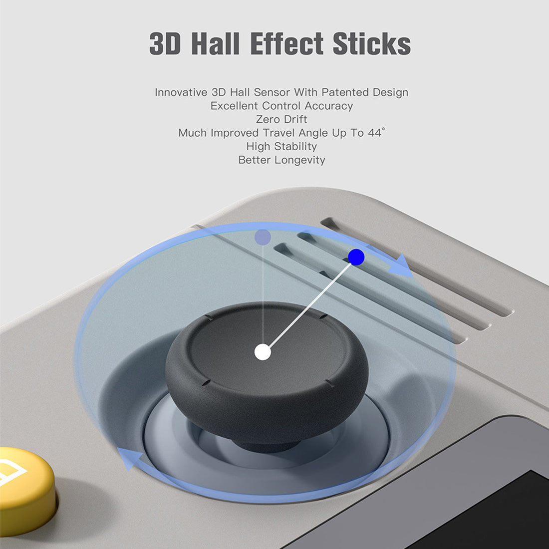 .3D Hall Joystick: Innovative 3D Hall sensor with patented design, providing exceptional control accuracy, zero drift, and a significantly improved maximum travel angle of up to 44° for high stability and durability.