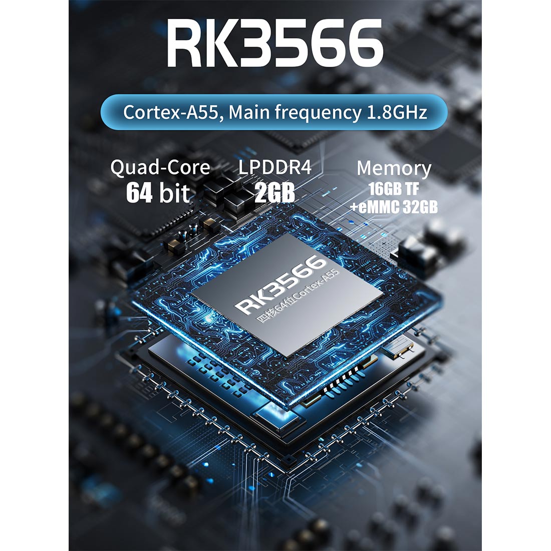 .CPU: RK3566 Quad-core 64-bit Cortex-A55, 1.8GHz