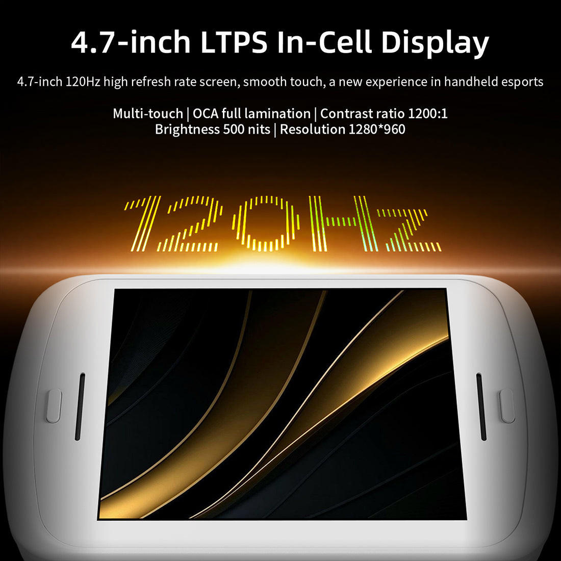 .Stunning 4.7-Inch LTPS In-Cell Display: Features a high-resolution 1280×960 touchscreen with full OCA lamination and multi-touch support. Enjoy smooth visuals with up to 120Hz refresh rate for crisp, responsive gameplay and intuitive control.