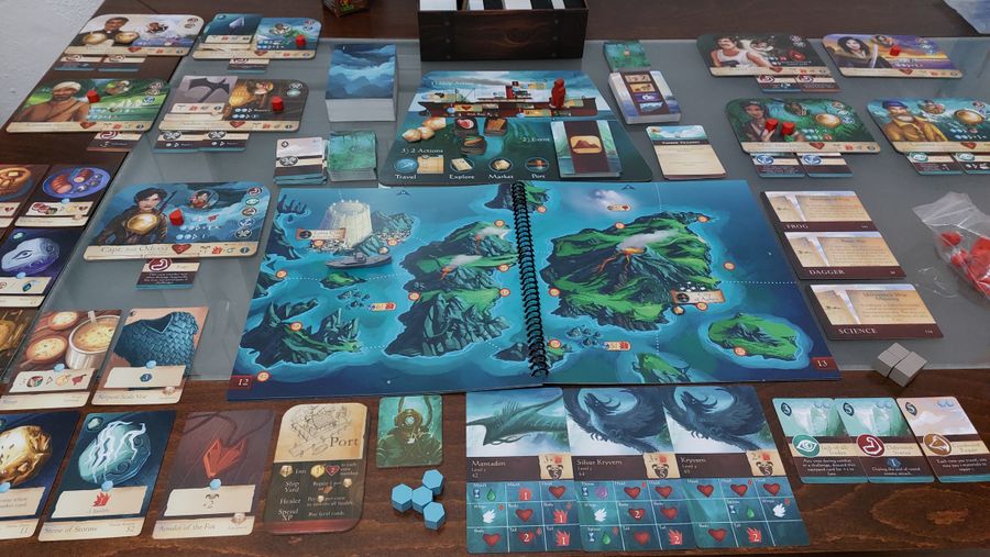 Sleeping Gods is a campaign game. Each session can last as long as you want. When you are ready to take a break, you mark your progress on a journey log sheet, making it easy to return to the same place in the game the next time you play. You can play solo or with friends throughout your campaign. It's easy to swap players in and out at will. Your goal is to find at least fourteen totems hidden throughout the world. Like reading a book, you'll complete this journey one or two hours at a time, discovering new lands, stories, and challenges along the way.