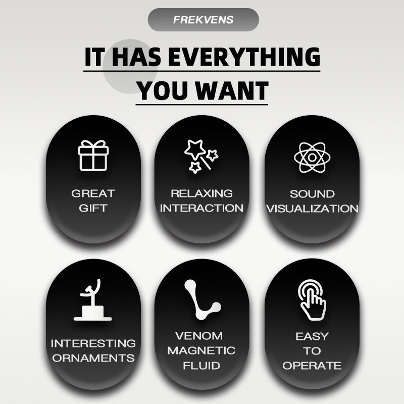 3.Multifunctional Companion: This dancing magnet liquid toy isn't just a visual treat; it's a versatile partner for your HI-FI or Bluetooth-Compatible speakers, an innovative desk decoration, a magnetic fluid display stand, a voltage balance toy, a fluid dance light, and even a metronome for piano practice.