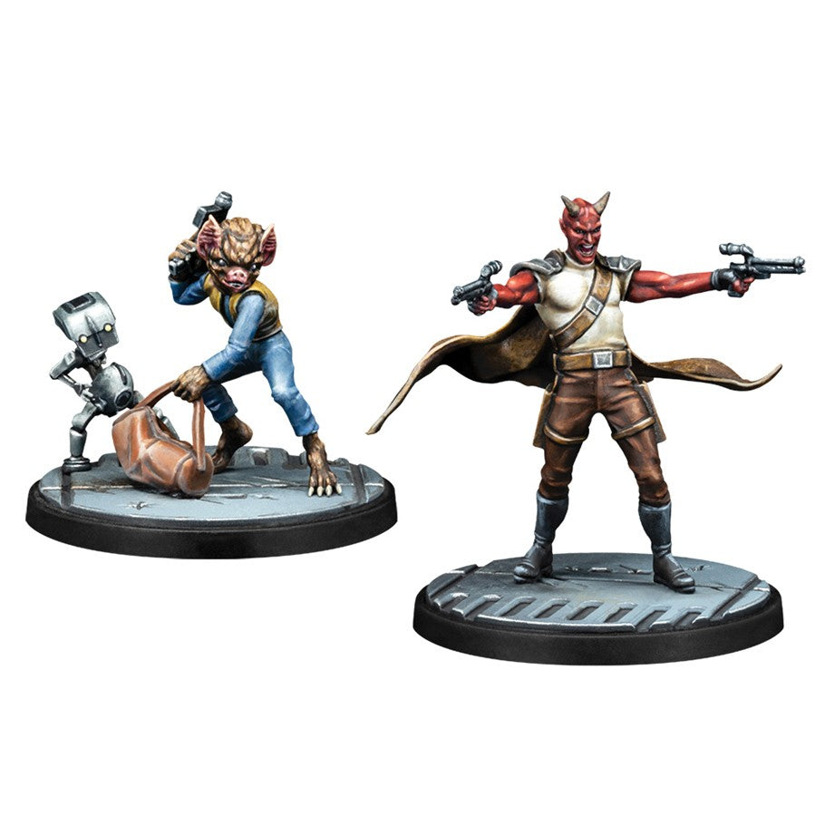 The galaxy's most ruthless bounty hunters enter Star Wars: Shatterpoint in this pack! The clever and fearsome Cad Bane has built his reputation working for the Hutts and even Darth Sidious himself and this pack adds him to the game as a Primary Unit. Joining him are the deadly Aurra Sing as a Secondary Unit and a Bounty Hunter unit consisting of a Chadran-Fan, Todo 360, and a Devaronian as new Supporting Unit. In addition to beautifully sculpted miniatures of these characters, this pack also includes all the Unit, Stance, and Order cards for players to make full use of them in Star Wars: Shatterpoint!