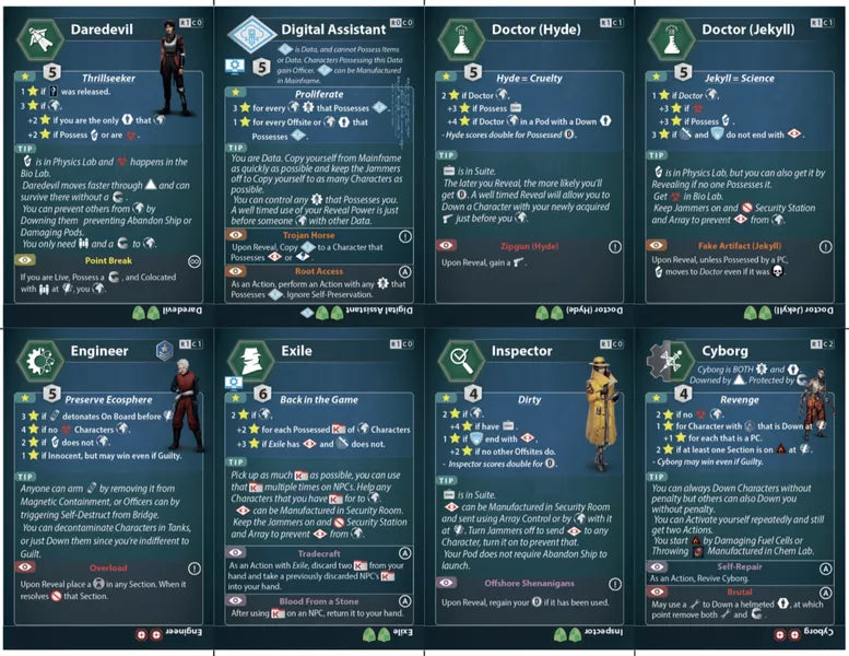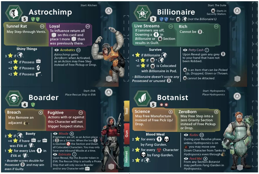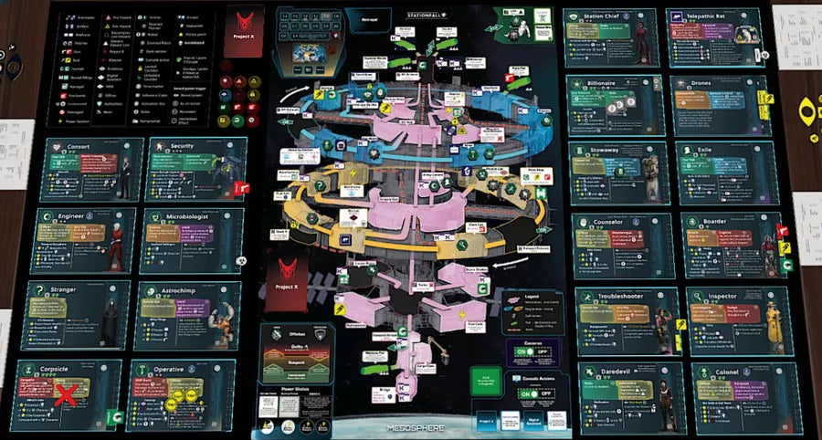 Stationfall is a box full of creative solutions, but that box is going to morph, twist, and grow teeth over the course of play. Your best turns will exploit the unique tactical freedom of being a secret conspiracy, as well as deductions about your opponents’ identities and motives. Stationfall is messy, intricate, and full of dangerous variables.