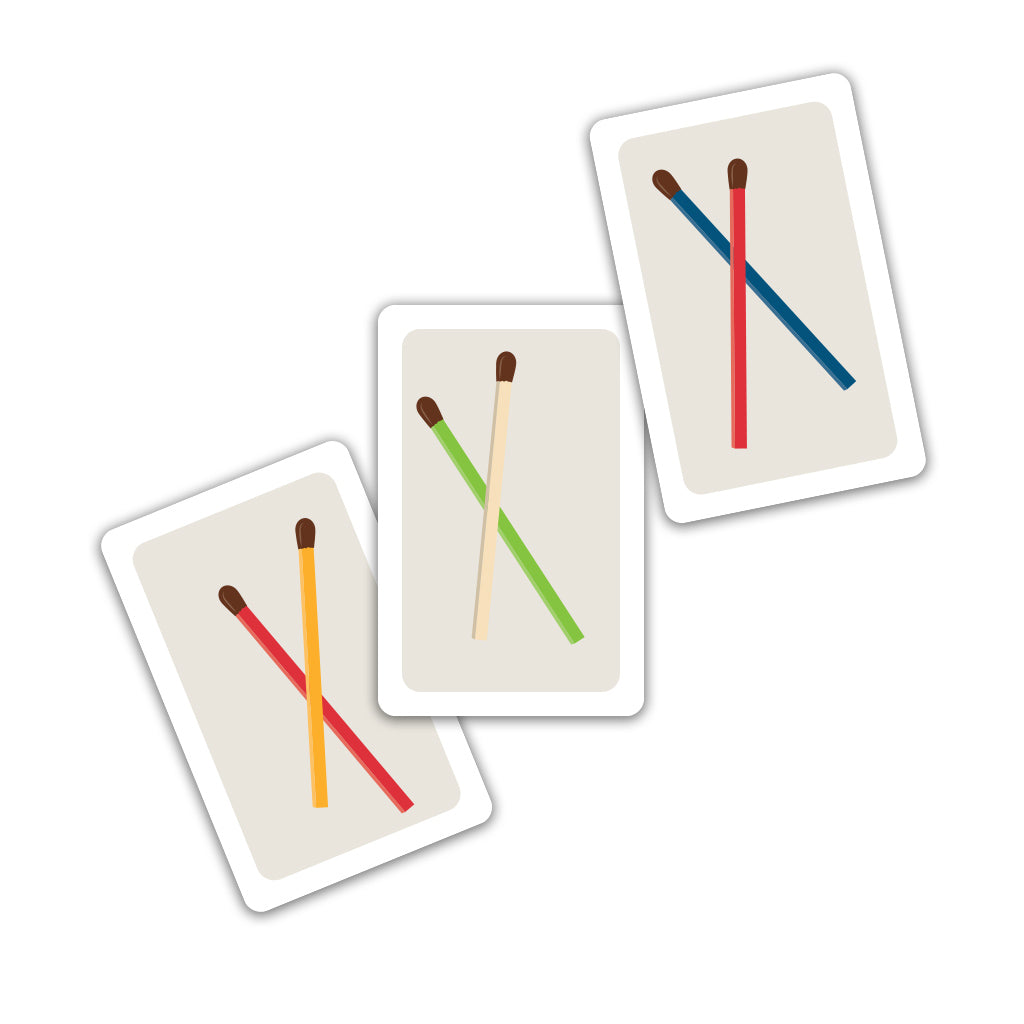 The game of speed and colors - Place 16 cards on the table in a 4 x 4 square. At the beginning of each round, 2 players pick one stick each (secretly) and place their draw hand in the air above the cards. On the count of 3, the players holding the matches release them on the table. Now, all players try to be the first to tap the card(s) showing the same color combination. Players collect the cards they were the first to tap and place them on their score piles. The player who collects the most cards wins the game.