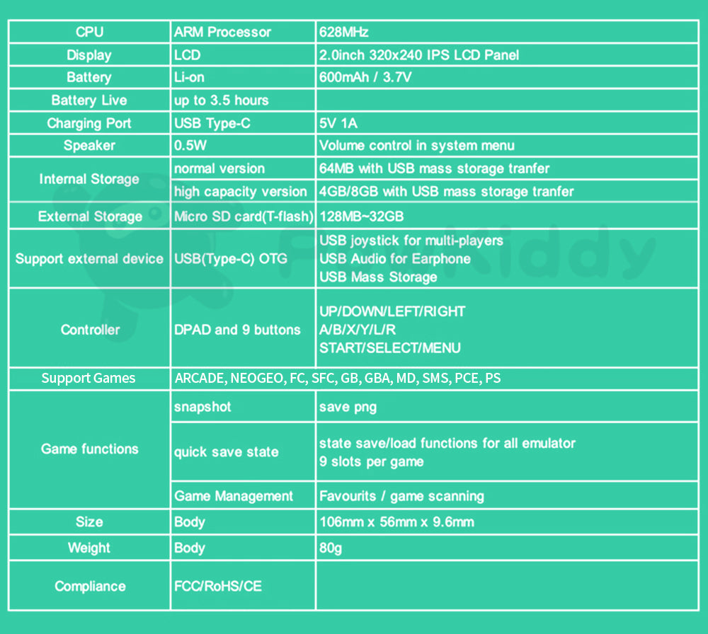 🎮Powered by an ARM628 processor and a 600 mAh lithium polymer battery, this device delivers reliable performance and impressive battery life, with up to 3.5 hours of playtime on a single charge. Plus, it fully charges in just 1.5 hours, so you can get back to gaming faster.