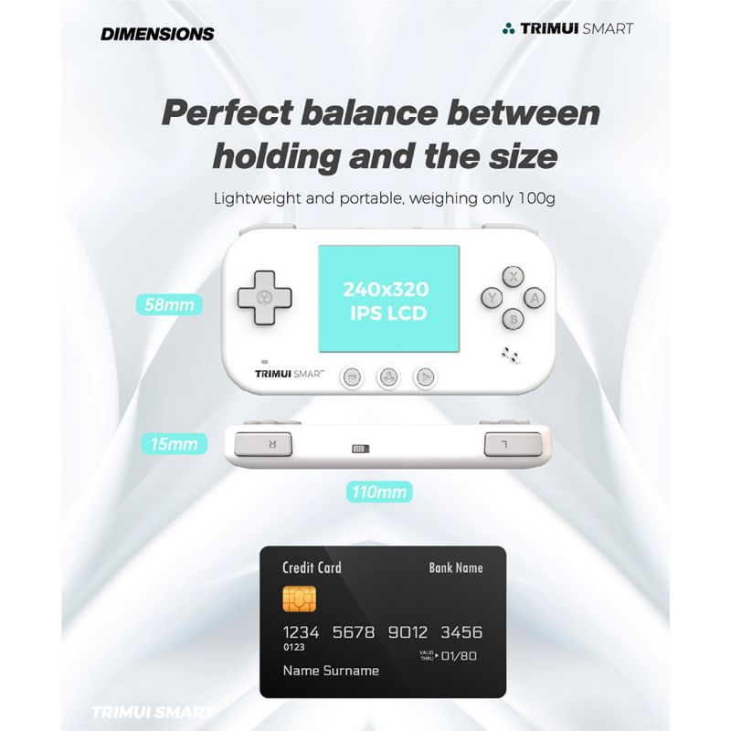 - TRIMUI SMART features a built-in high-performance processor and a 2.4-inch screen to present a colorful, and sleek look. And it adopts TRIM-U platform which supports domain network battle, WIFI hotspot-mode battle, Bluetooth headset and much more functions, with up to 15,000 games of varied platforms. Based on its built-in software platform, you can continuously upgrade the package to unlock more powerful features.