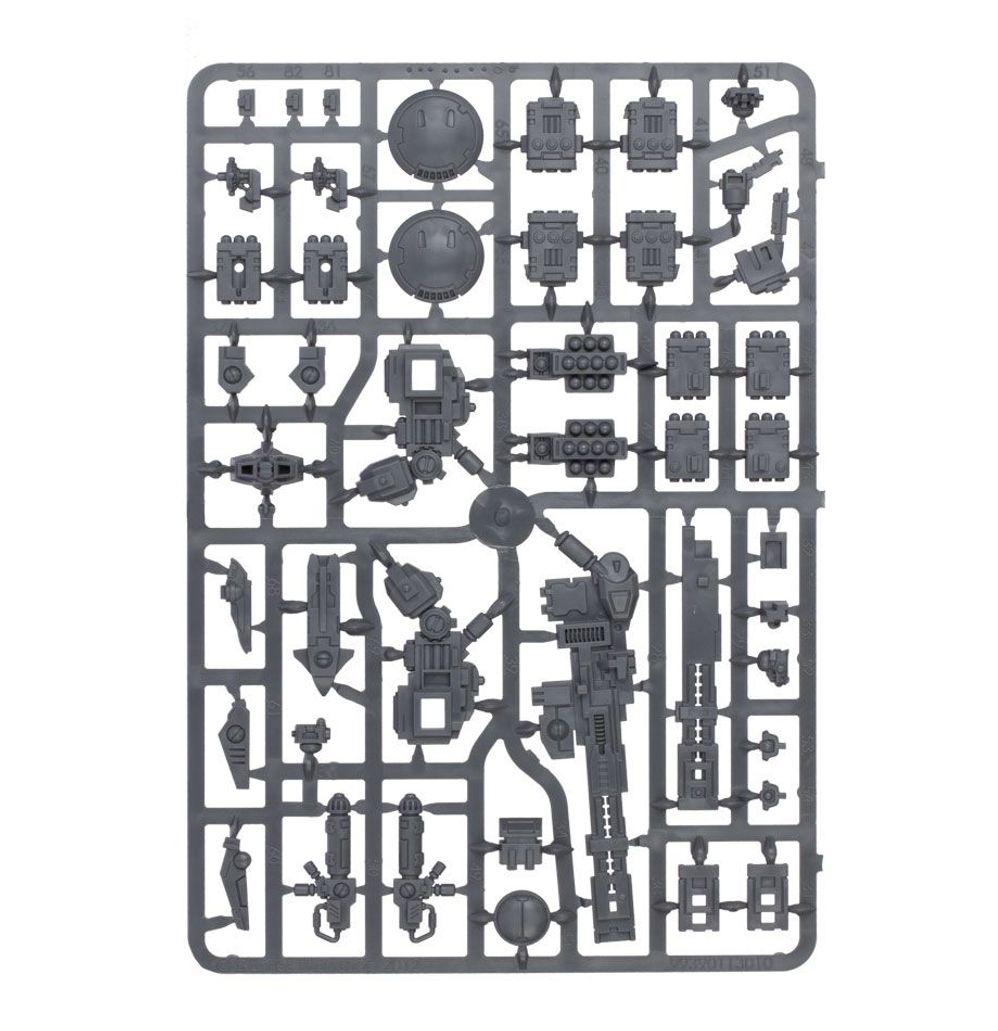 This multi-part plastic kit contains 91 components and a T'au transfer sheet with which to make a Broadside Battlesuit and two Drones.