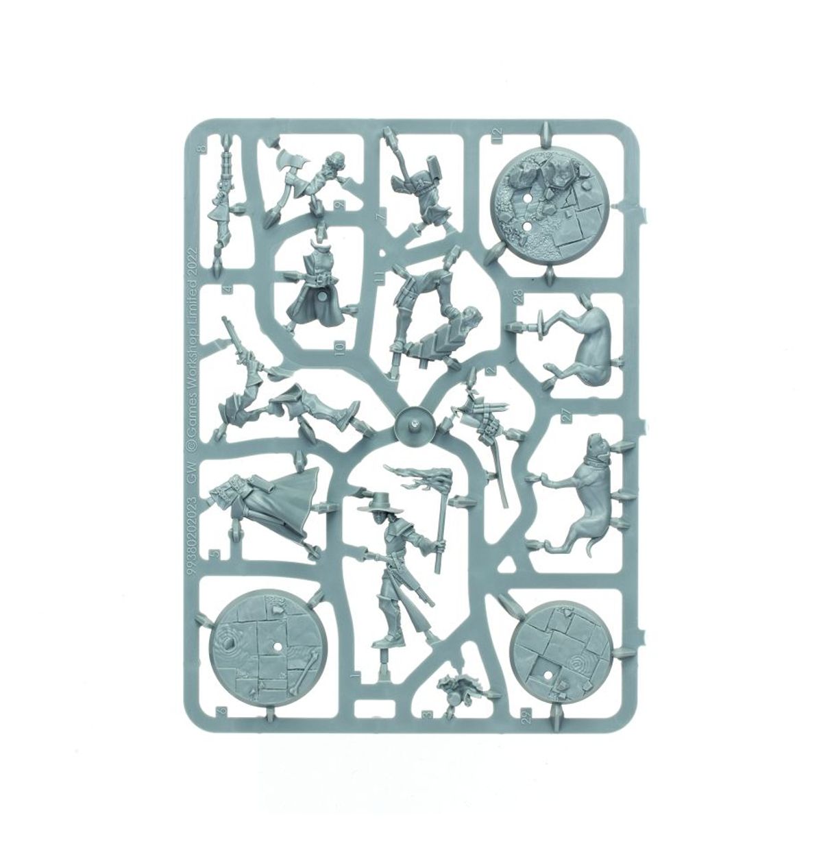 - 6x push-fit Hexbane's Hunters miniatures – no glue required to assemble, cast in solemn grey to stand out even when unpainted.