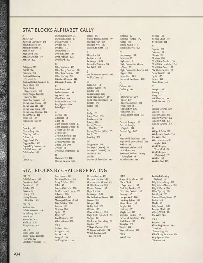 Approximately 200 features, traits, reactions, lair actions and more, to be used when you design unique monstrosities to challenge your players.