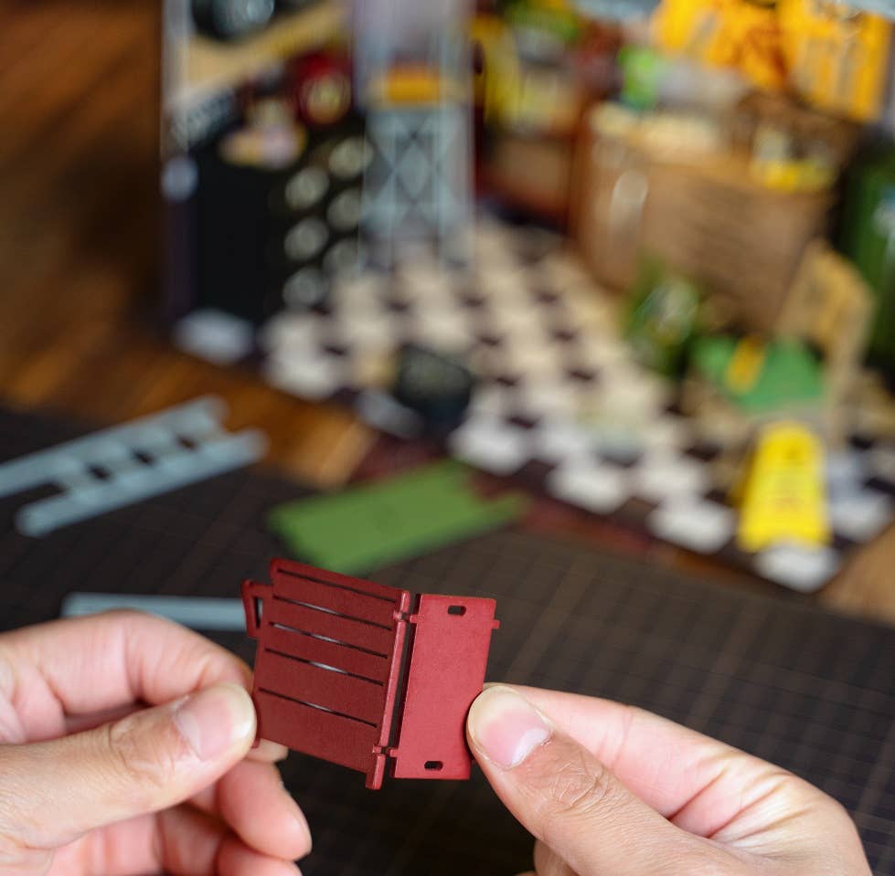 Brand: RolifeProduct Dimensions: 9.4 x 5.8 x 6.7 inchesItem Weight: 1.76 poundsRolife brings you what everybody wants in their home: the perfect garage workshop. Built with stunning accuracy, this miniature wonder captures your love for DIY with precisely crafted shelves, drawers, cabinets, boxes, wheels, hoses, tools, gloves, and accessories. We have details nailed down like the folding wet floor sign, the peg board, the toolbox, the watering can, the adhesives, the potted plant, the bricks, the classic chessboard floor, plus much more. The room is well-lit by an overhead LED lamp. Every space is optimized as is typical of the ideal home garage. The colors and textures depict a cheery and productive space where fantastic ideas become reality.