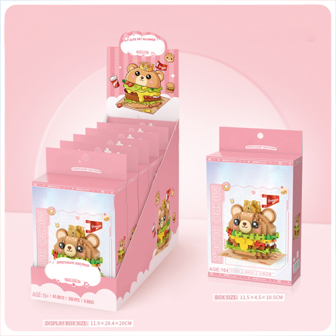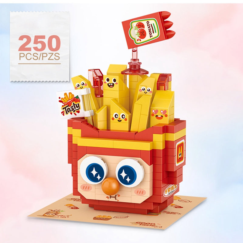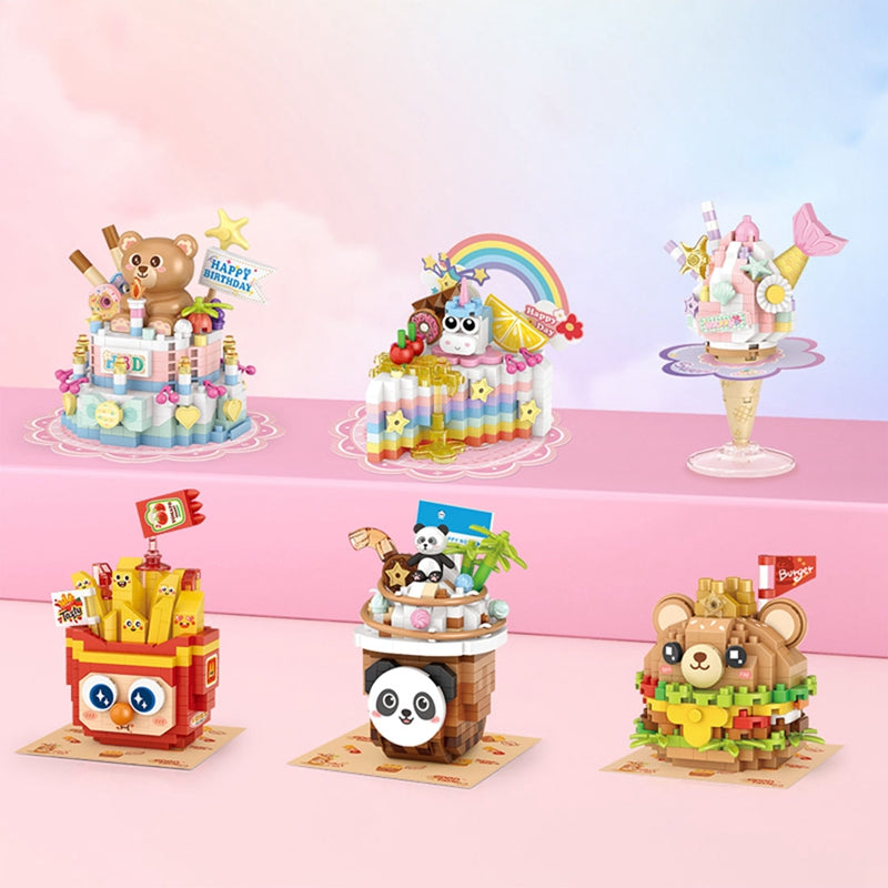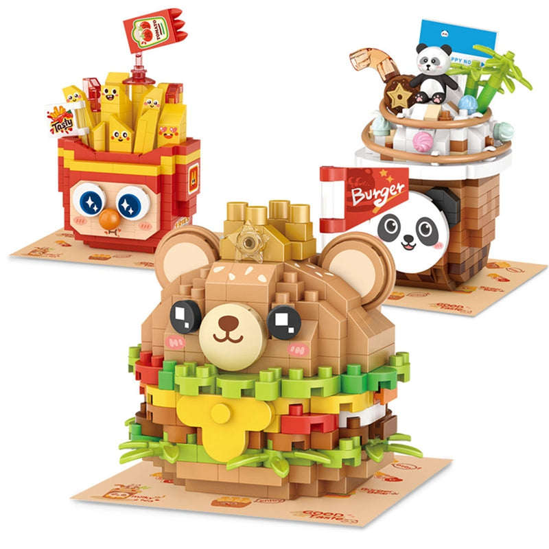 1. Size: food shape, the use of micro brick blocks than the traditional building blocks smaller than the first, cute and healing. Size is not compatible with traditional building blocks.