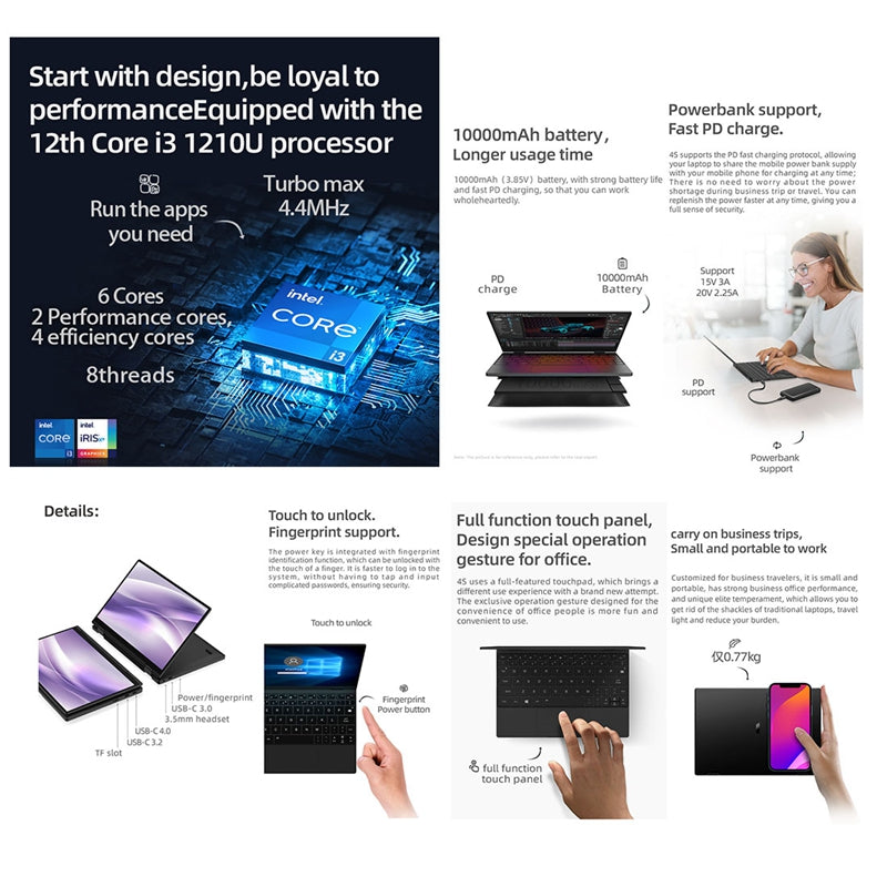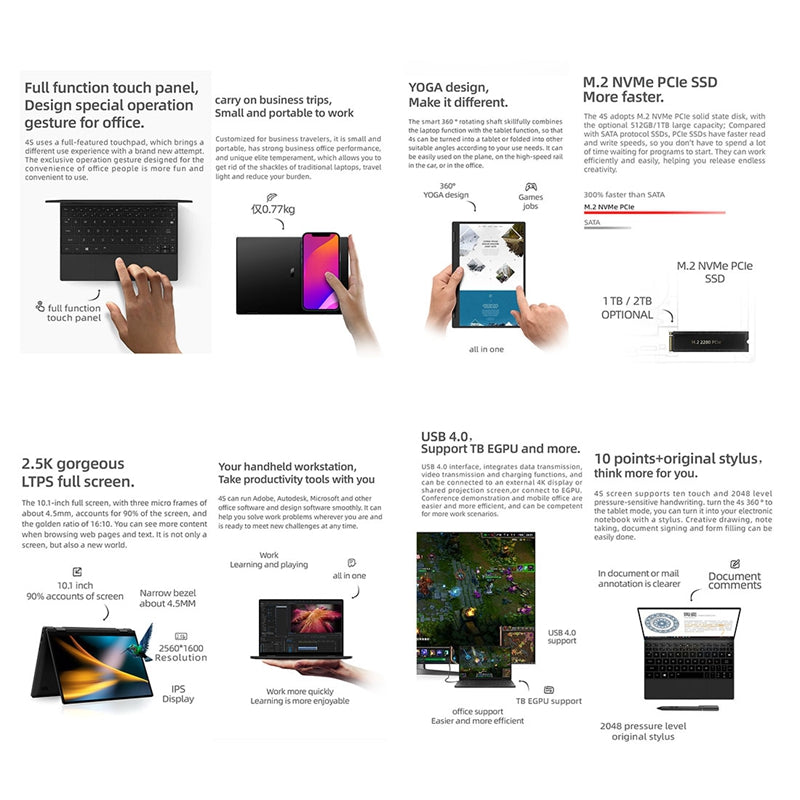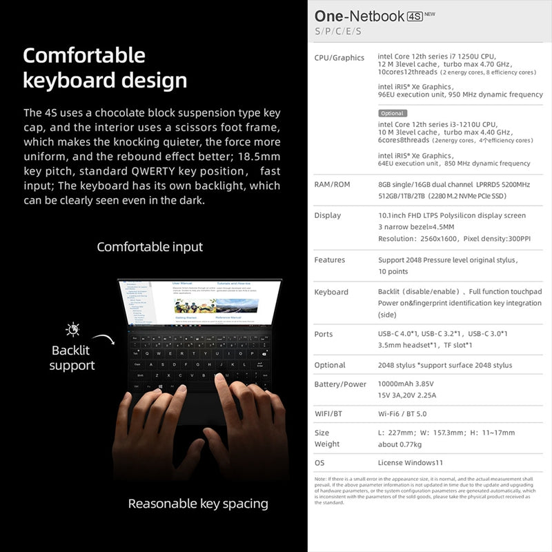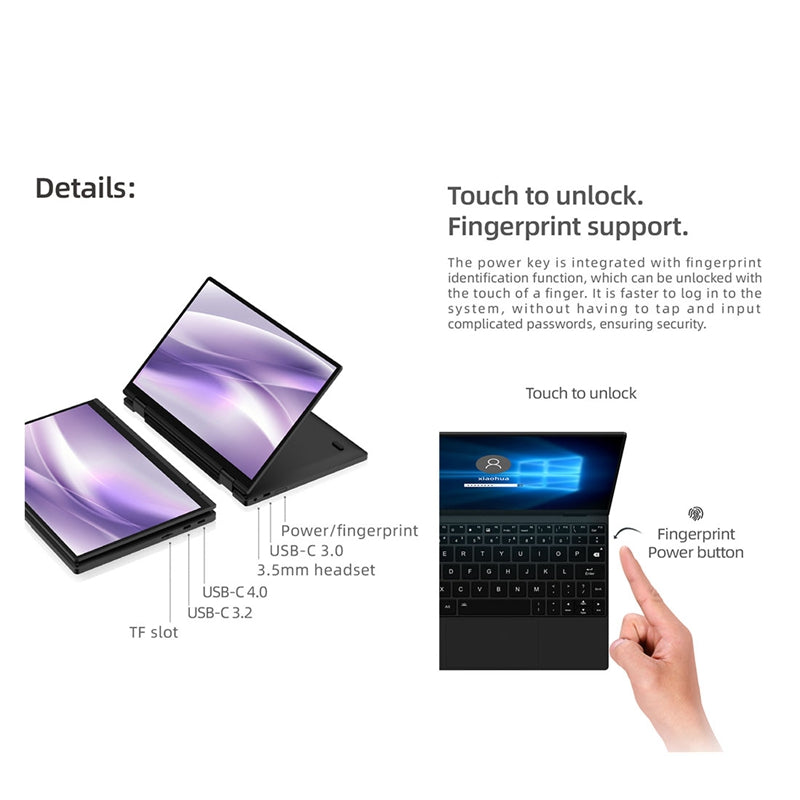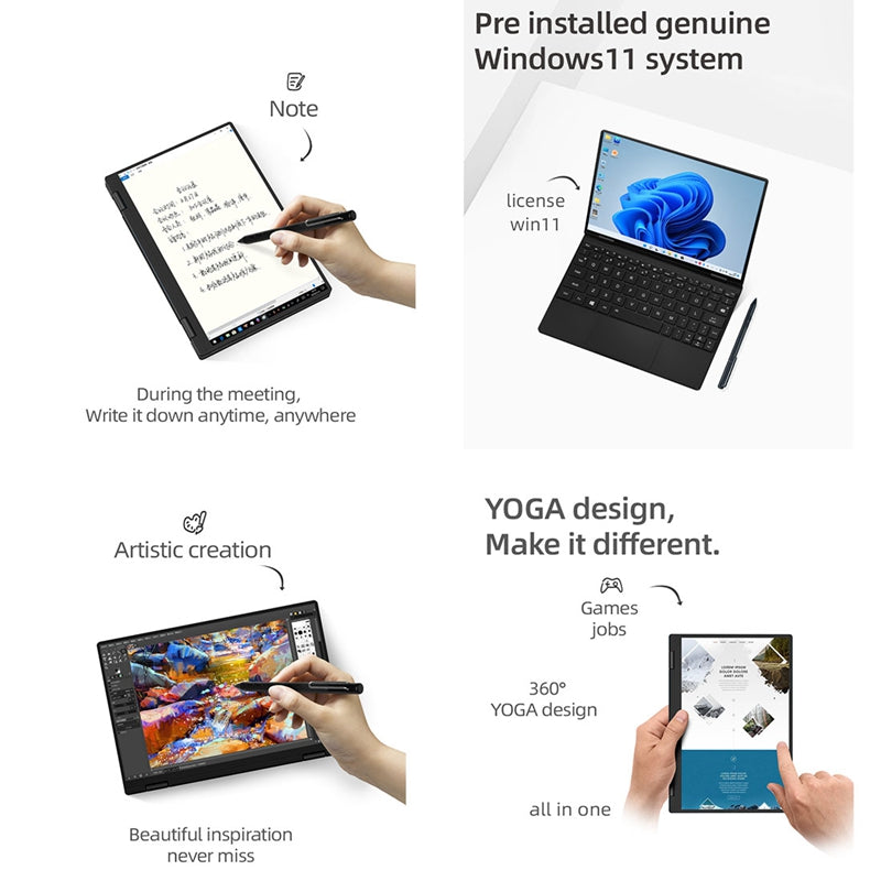.2-in-1 Functional Tablet PC: Combined with a flexible 360° hinge allows this One-Netbook to transform into a tablet according to your needs whether on a plane, in a car or high-speed train, or in the office, or fold into other suitable angles effortlessly.