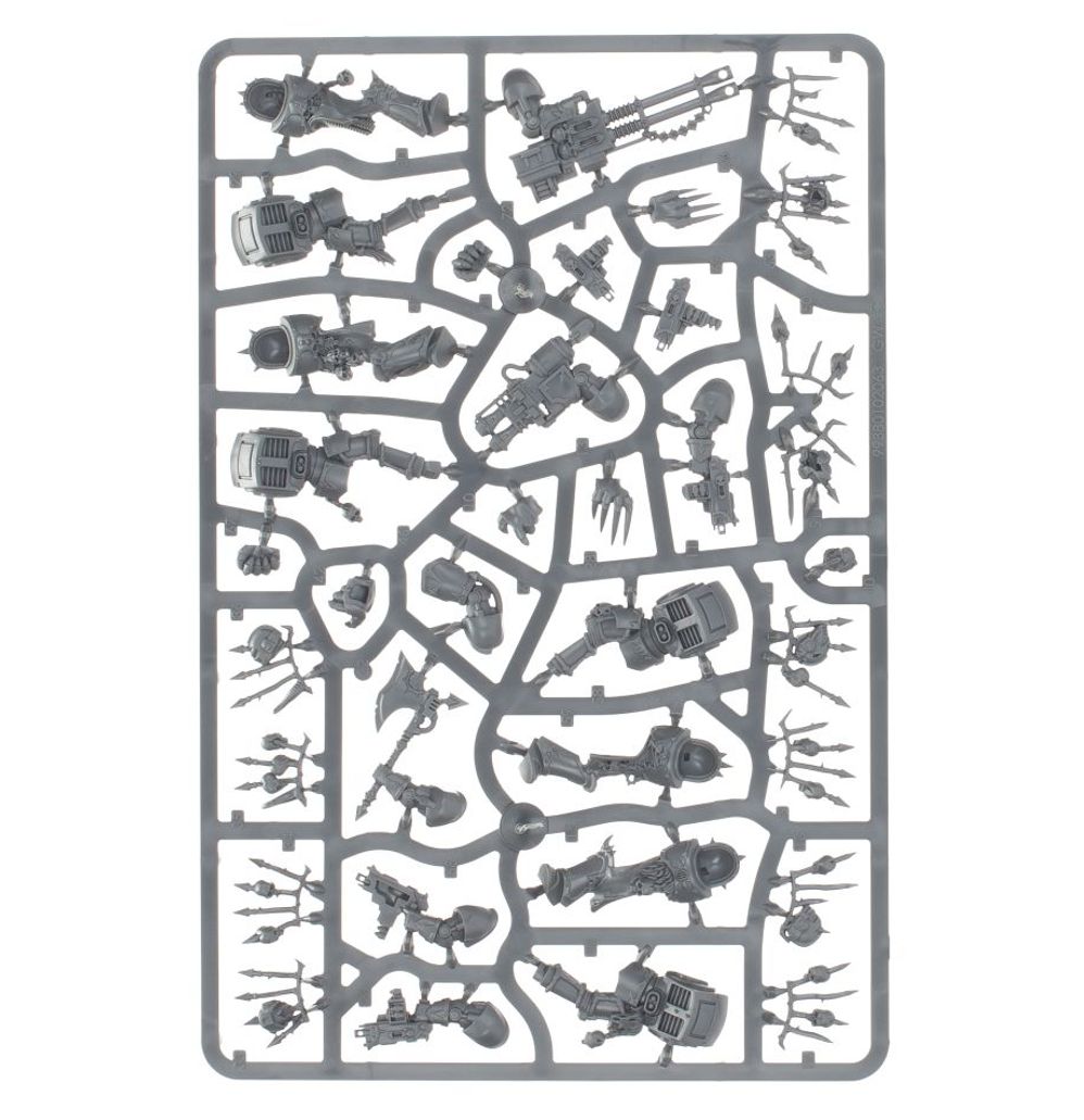 This multipart plastic kit builds a squad of five Chaos Terminators. Each of these hulking warriors is armed with a combi-bolter – two of which can be upgraded to combi-flamers, two into combi-meltas, and one into a combi-plasma gun – and a melee weapon for wading into close combat. The kit includes three power fists, one armour-splitting chainfist, and a variety of accursed weapons in the form of axes, blades, and a maul, as well as two lightning claws that can be worn separately or as a pair. It also offers a pair of heavy weapons to choose from – a heavy flamer, or a long-ranged reaper autocannon.