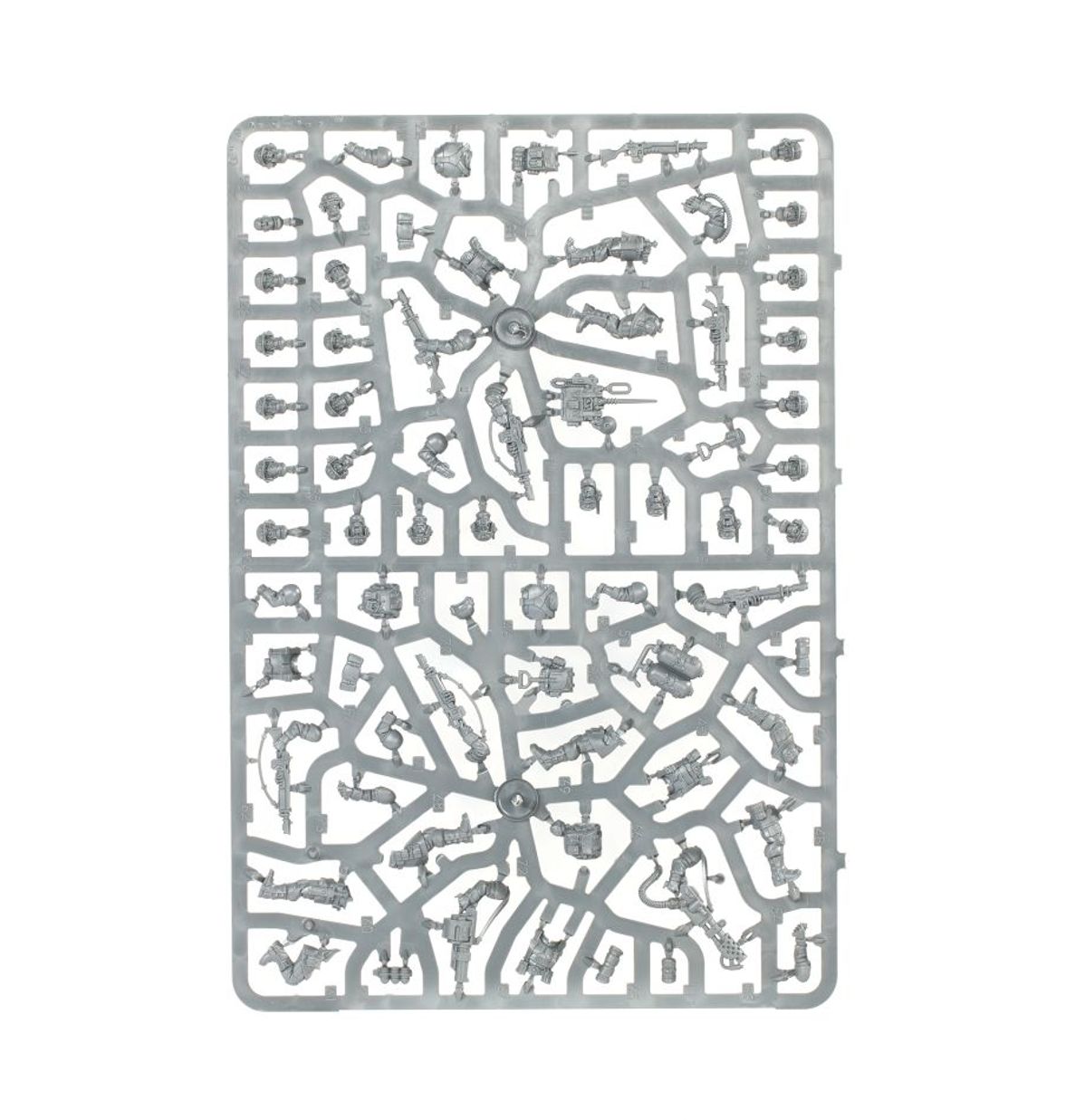 This kit comprises 131 plastic components, and is supplied with 10x Citadel 25mm Round Bases. Also included is a Cadian Infantry Transfer Sheet, with 597 transfers featuring numerals, squad markings, and Cadian regimental heraldry. These miniatures are supplied unpainted and require assembly – we recommend using Citadel Plastic Glue and Citadel Colour paints.